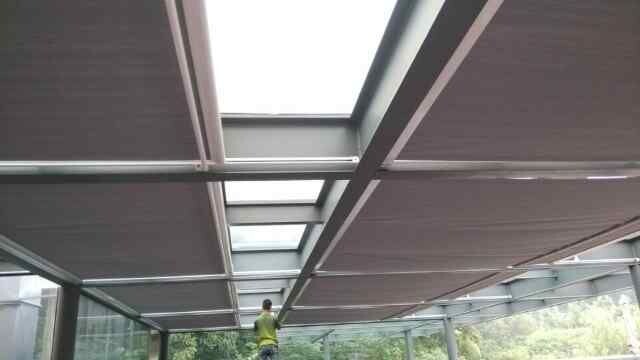 - 工程名稱:杭州陽光房遮陽電動遮陽簾采光頂遮陽電動外遮陽---浙江老年大學電動外遮陽