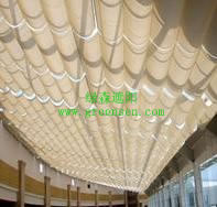 FSS ceiling screens suitable for bending, sloping or level of the glass ceiling, in the above case, the fabric has been subjected to tension, so the agency to adopt a SOMFY one end of tubular motor, the other end with a strong spring mechanism. In the process of fabric retractable ceiling remain very flat. Its working principle is the use of motor-driven, driven by the motor rotating the volume on the volumes of rope, so that the fabric inside the rope as the rope winding volume and Collapse, another spring mechanism inside the reel wire the force was due Through the fabric that was originally produced natural state to tighten the spring tension. When the motor is reversed, the wire rope with the volume gradually relax the reversal, this time, the fabric tube through the other end of the roll spring tension will slowly reverse reel, complete the fabric of the opening movement, so as to achieve the effect of shading .