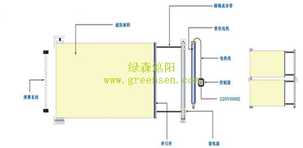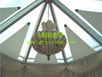 FSS ceiling screens suitable for bending, sloping or level of the glass ceiling, in the above case, the fabric has been subjected to tension, so the agency to adopt a SOMFY one end of tubular motor, the other end with a strong spring mechanism. In the process of fabric retractable ceiling remain very flat. Its working principle is the use of motor-driven, driven by the motor rotating the volume on the volumes of rope, so that the fabric inside the rope as the rope winding volume and Collapse, another spring mechanism inside the reel wire the force was due Through the fabric that was originally produced natural state to tighten the spring tension. When the motor is reversed, the wire rope with the volume gradually relax the reversal, this time, the fabric tube through the other end of the roll spring tension will slowly reverse reel, complete the fabric of the opening movement, so as to achieve the effect of shading .