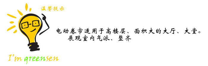 采用管狀電機為動力的一種電動化卷簾機構。它操作簡便,工作安靜平穩,是手動卷簾的一種升級換代產品。根據建筑結構及高度的不同,可采用47、60、70、80、120等不同管徑的電動卷簾。在安裝結構允許的情況下,電動卷簾最多可實現一拖六,即一個管狀電機拖動六幅面料同時升降。當卷簾高度超過5米時,采用鋼絲導向定位系統,可幫助面料正常運行。采用管狀電機驅動,一般采用40、50電機; 卷管采用國優鋁合金材料,強度極高,不變形,表面經過陽極氧化處理,防老化、耐腐蝕;配以各類型面料達到不同遮陽效果;頂部配備圓形罩殼,兩側配備遮光槽,既能防風雨、阻擋灰塵雜物,又能達到全遮光效果。廣泛用于家庭住宅、酒店、辦公樓、會議室、展覽廳等場所 。
