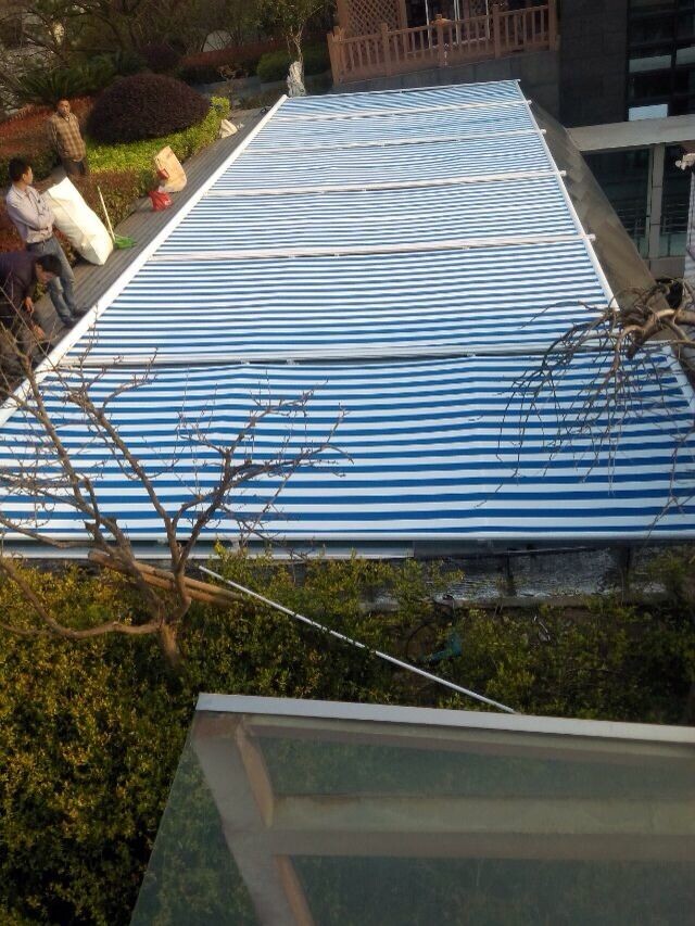 杭州陽光房遮陽電動遮陽簾陽光電動外遮陽采光頂遮陽---地中海別墅陽光房電動外遮陽