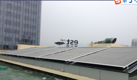 富陽東方茂購物中心,一共分為兩塊商場采光頂,均為人字形,公司在遮陽設計上,是人字頂向兩邊伸縮天