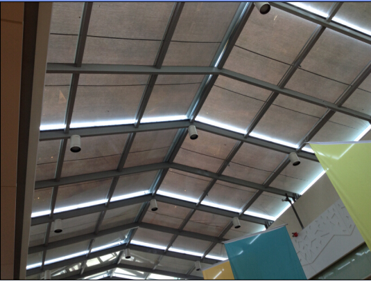 杭州電動遮陽簾、陽光房遮陽、采光頂遮陽、玻璃頂遮陽---杭州富陽東方茂購物中心商場采光頂電動外遮陽